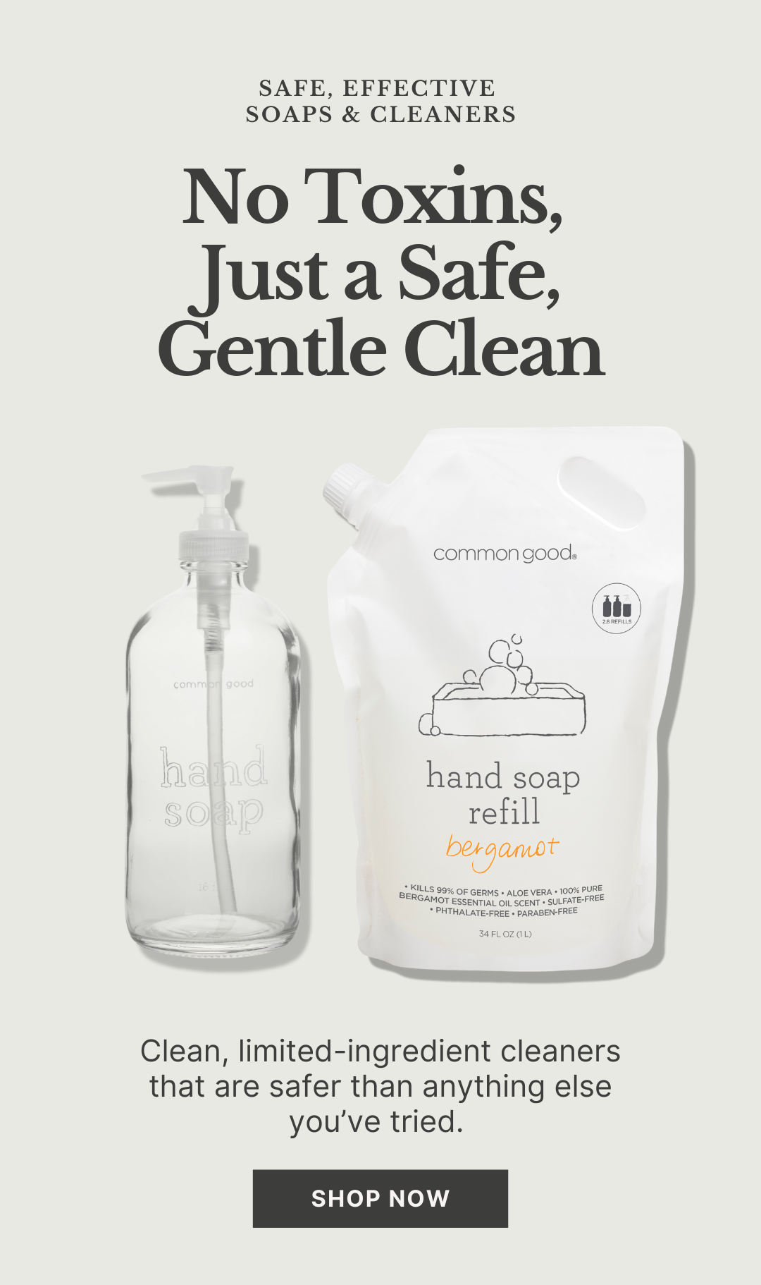 In 2010, I founded Common Good to combat single-use plastics and create safe, sustainable home and personal care products. As a mother, I wanted truly non-toxic, refillable options that were better for people and the planet. We led the modern refill revolution, setting a new industry standard. Our mission continues as we develop new products that allow us all to live more sustainably.