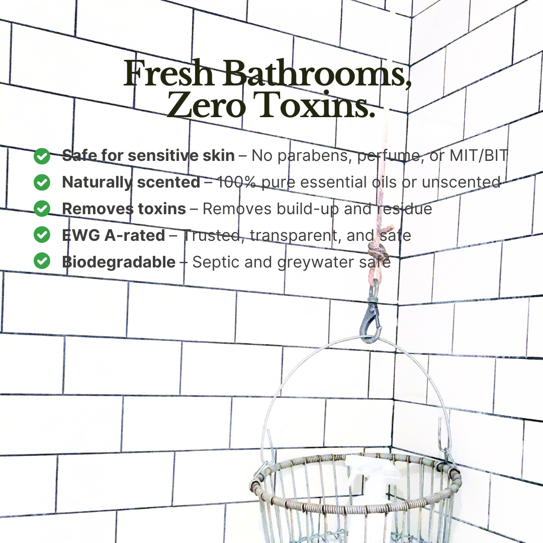 Spray onto bathroom surfaces and allow to sit for a few minutes.