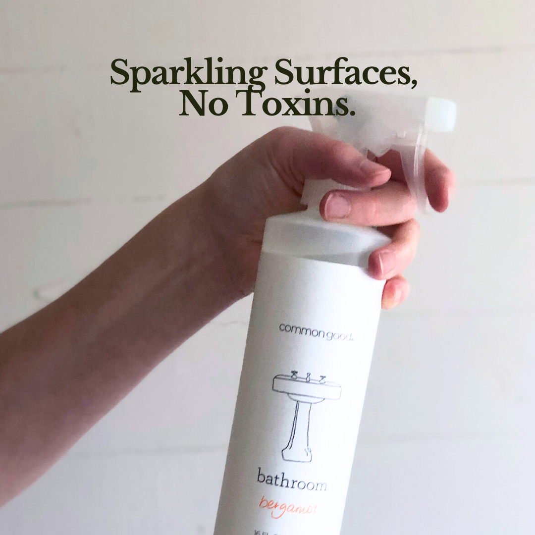 Clean your bathroom without harsh chemicals.Our Bathroom Cleaner cuts through soap scum and grime, leaving a fresh, natural scent.