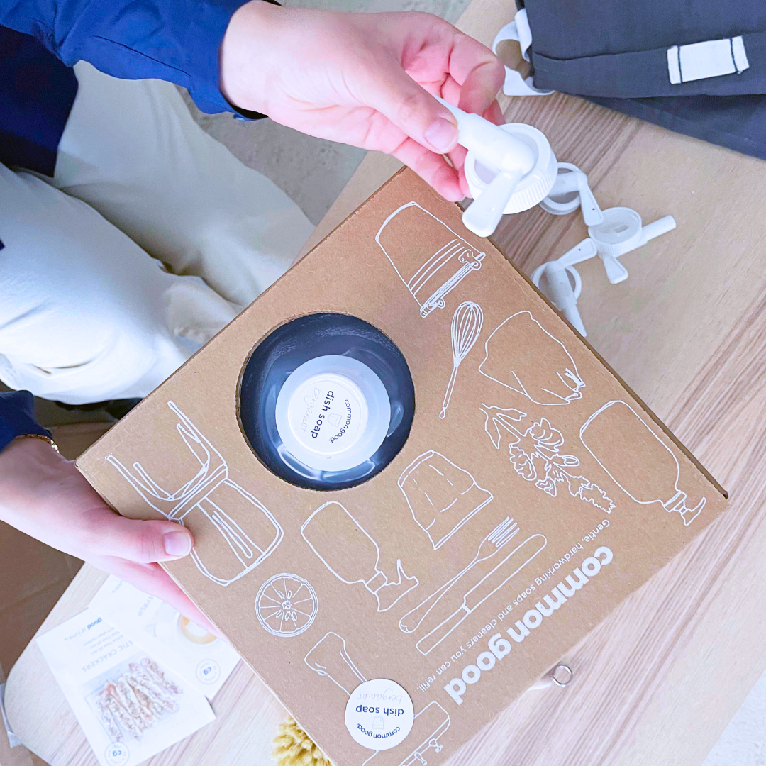 Stock up and cut down on waste. Our Dish Soap Refill Box holds 2.5 gallons of powerful, plant-based dish soap, saving over 20 plastic bottles. Gentle on hands, tough on grease, and designed for a sustainable kitchen.