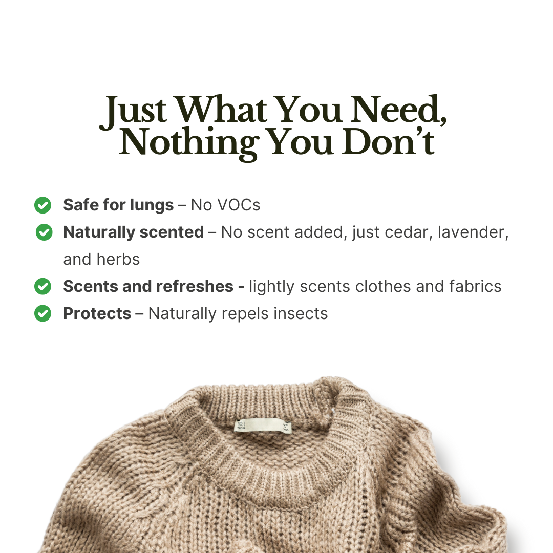 Place the sachet in drawers, closets, or storage bins to freshen clothes and linens naturally.