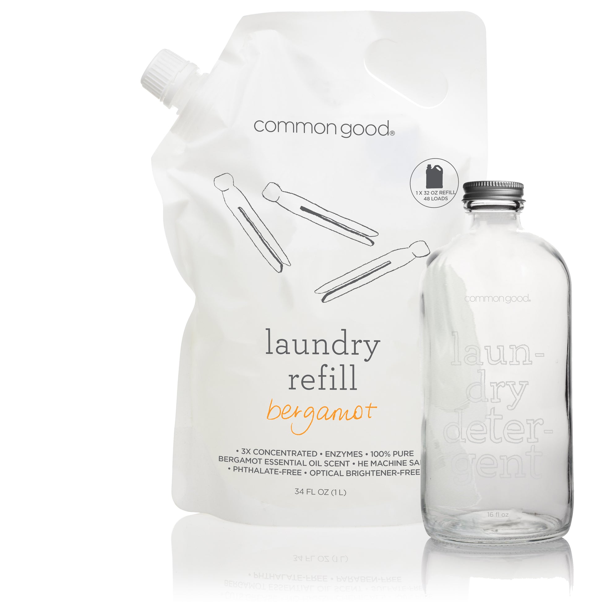 Laundry Detergent Refill Pouch and Glass Bottle Set