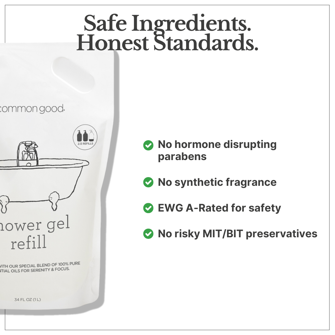 Every Common Good product is rated A by the Environmental Working Group (EWG), a trusted authority on ingredient safety. This top rating reflects our commitment to creating formulations free from harmful chemicals, using only safe, plant-based ingredients that meet the highest standards. Backed by verified research and rigorous evaluations, our products deliver a clean you can feel good about—effective, gentle, and uncompromising.