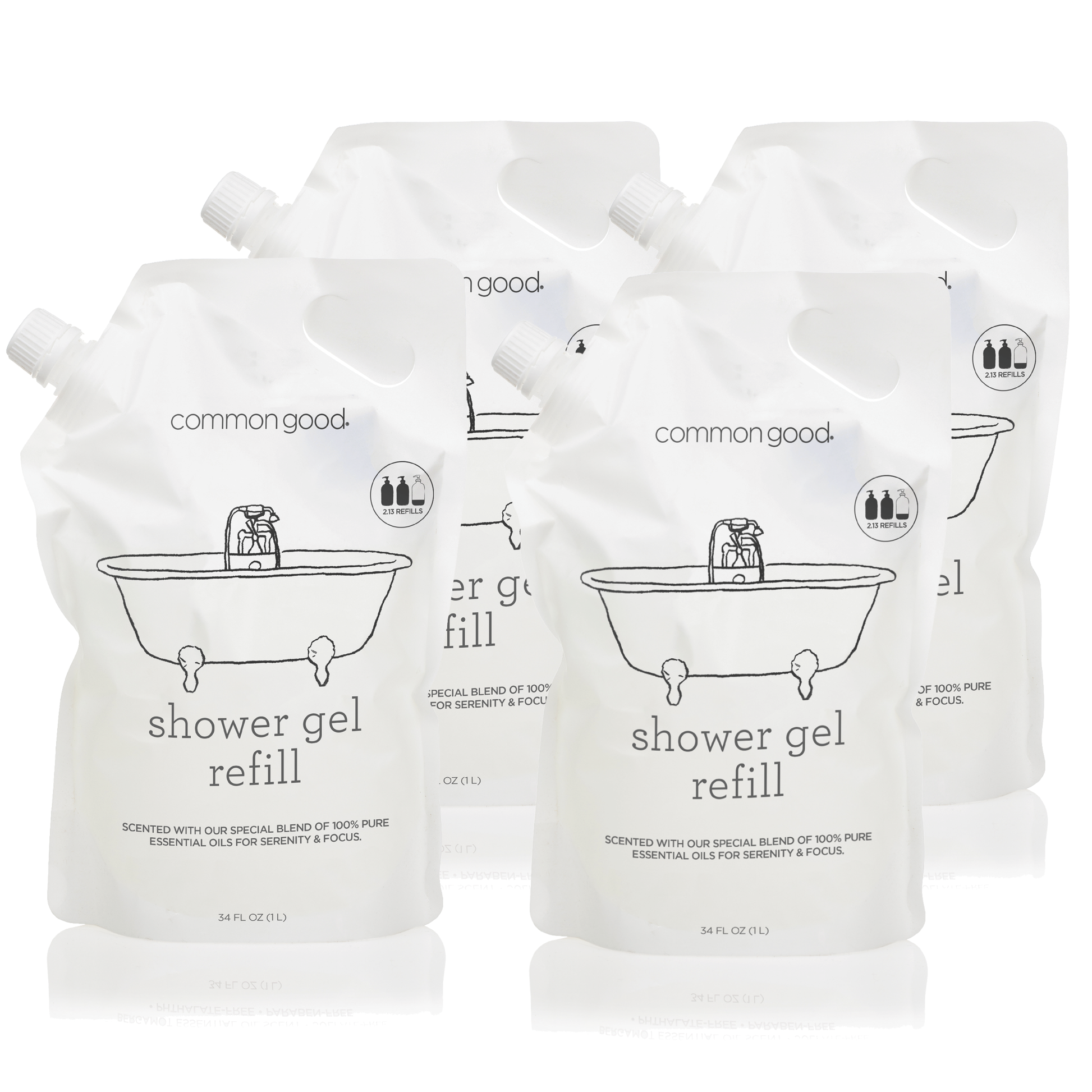 Refill your bottle with Shower Gel using the easy-pour pouch. Apply to wet skin, lather, and rinse thoroughly.